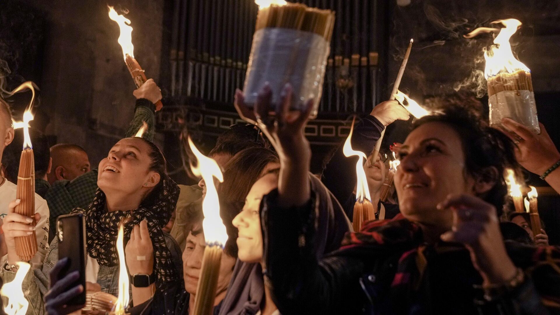 Чудо схождения Благодатного огня ежегодно происходит накануне Пасхи в храме Воскресения Христова в Иерусалиме. Что означает это событие для православных верующих, в чем его суть и значение, откуда берется огонь на самом деле, почему зажигается и как сходит, кто может попасть на церемонию в 2025 году – в материале РИА Новости.