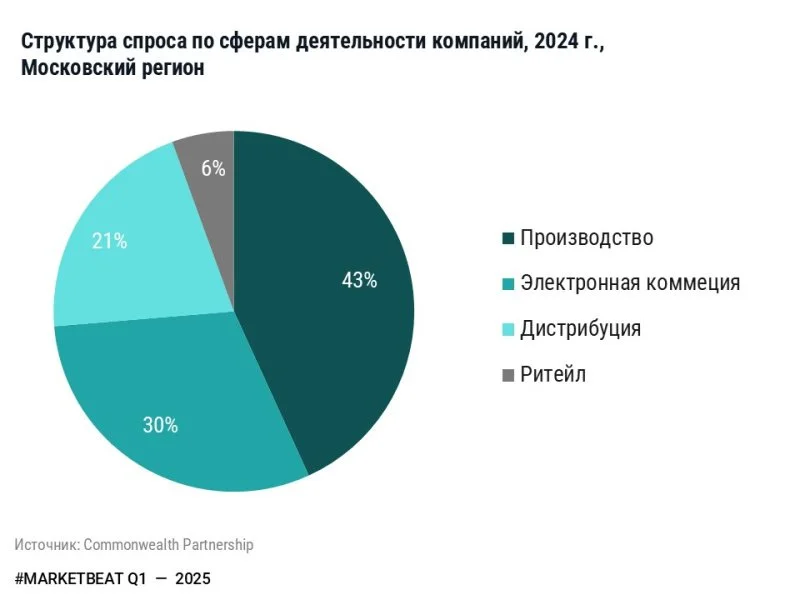 Новое строительство Light Industrial по итогам I квартала 2025 года снизилось на 53% относительно показателя за I кв. 2024 года.Такие данные содержаться в аналитическом отчете Commonwealth Partnership (CMWP). «Новое строительство объектов формата Light Industrial (LI) по итогам I квартала 2025 года составило 79 тыс. кв. метров, что на 53% ниже показателя за аналогичный период 2024 года. Доля сегмента в общем объеме нового строительства в Московском регионе в I квартале 2025 года составила 32%, что на 3 п. п. ниже значения за I квартал 2024 года», — указали в CMWP, уточнив, что по итогам первого квартала ставка аренды сохранилась на уровне прошлого года. – 14 170 рублей за кв. за метр в год, превысив значение за I квартал 2024 года на 11%. Структура спроса в I квартале 2025 года в сегменте Light Industrial сравнима с рынком объектов формата Big-Box. Лидерами по наращиванию складских мощностей также стали сферы производства и электронной коммерции. Ставка аренды так же, как в сухих складских объектах, показала минимальный рост с конца 2024 года. Сумма купленных и арендованных площадей в сегменте Light Industrial в Московском регионе составила 54 тыс. кв. метров по итогам I квартала 2025 года. Ключевым интересантом по наращиванию складских площадей этого формата стала сфера производства, которая составила 43% от общего объема спроса. Впервые e-comm занял значительную долю в общем объеме показателя, сместив второго традиционного лидера – сферу дистрибуции. Доля онлайн-торговли достигла 30% за счет одной крупной сделки маркетплейса Wildberries в логистическом комплексе Гранат (16 454 кв. метров).