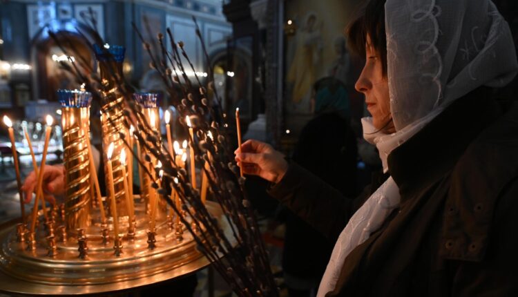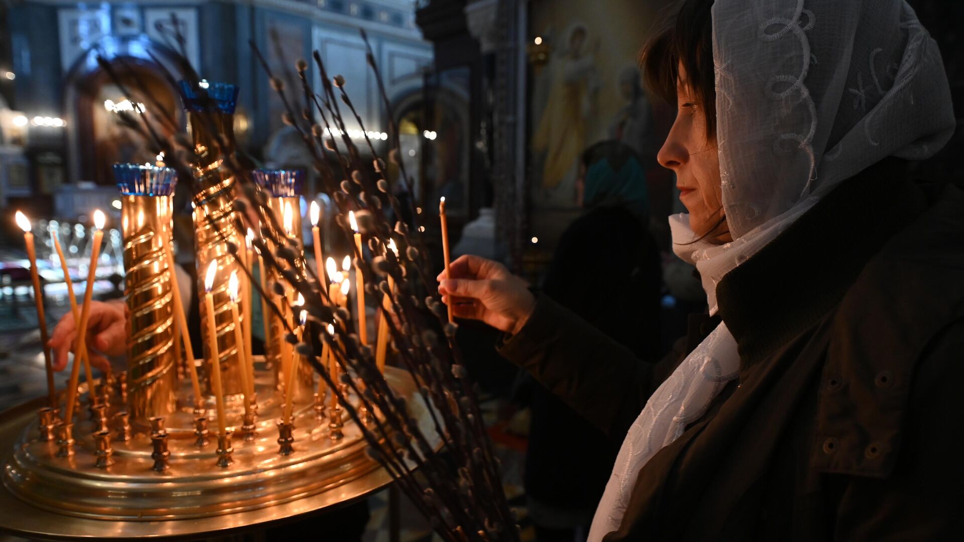 Это один из двунадесятых праздников (12 самых важных в православной церкви, связанных с жизнью Иисуса Христа и Богородицы).Прихожанка во время божественной литургии, посвященной празднованию Входа Господня в Иерусалим, в Патриаршем Вознесенском войсковом всеказачьем соборе в городе Новочеркасске